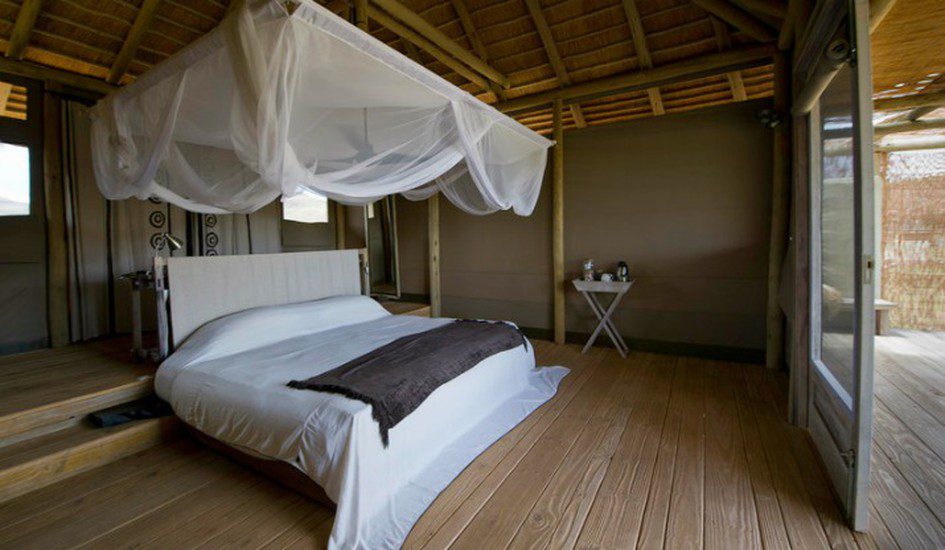 Located on the boundary of the world renowned Etosha National Park, Andersson’s Camp is the perfect point from which to explore the diversity of fauna and flora in this region. What’s more, this charming eco-sensitive camp is set within the privacy of its own reserve teeming with wildlife. Formerly an old farmstead, the camp is beautifully nestled in mopane scrub with the scenic backdrop of the low Ondundozonanandana mountain range. On arrival you will find your en-suite accommodation fronting onto a productive waterhole. Each of the 18 tents is raised on decks for enhanced views of the passing game.